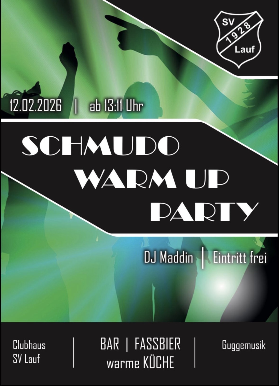 Februar 12 |13:11 - 22:00 Schmudo-Warm-Up Party 2026 Sportgelände SV Lauf Aubachweg 2a, Lauf, Deutschland